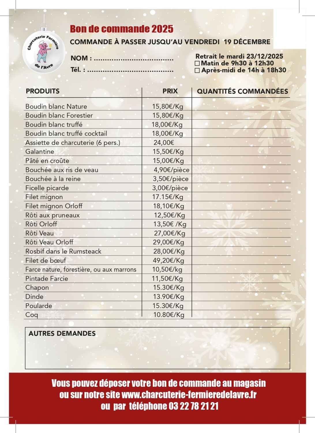 La Charcuterie fermière de l'Avre vous envoie un mail de confirmation ainsi qu'un bon de commande récapitulant sa composition
